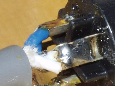 この画像のようなハンダ付けをされている方はいらっしゃいませんでしょうか。 導線がハンダの中に浮いている状態で、いわゆるイモハンと呼ばれる状態 です。これでも、確かに導通はあるはずでしょうが、導線とコネクターのピンの 間にハンダが入り込んでいますので、音質的には好ましくありませんし、 ハンダ付けの強度もそれほど高くありませんので、プロの間では不合格です。 |